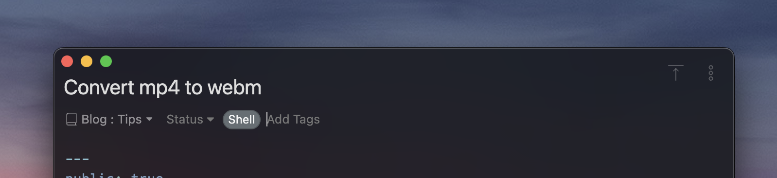 Next, let's add a tag to the note. The blog automatically detects tags specified in the frontmatters and generates pages for them.