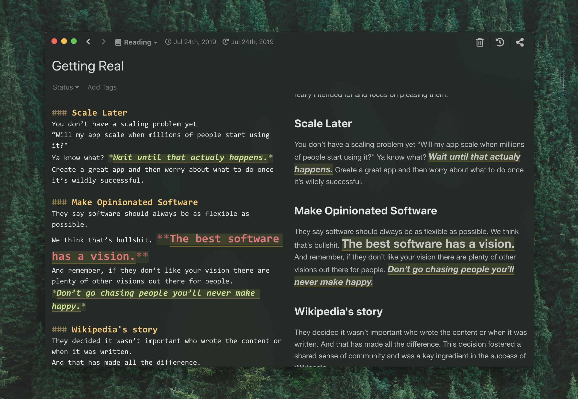 Then, boom! You should see that your notes got special highlightings for italic and strong emphasises.